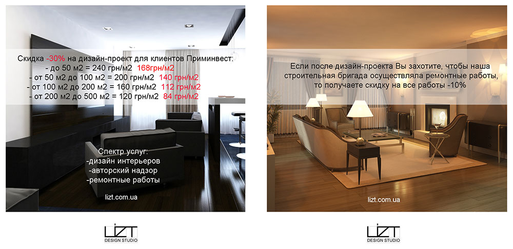 Детальніше ознайомитися з умовами акції Ви можете, зателефонувавши дизайнерам за телефонами: (093) 677 00 74, (093) 411 65 11.