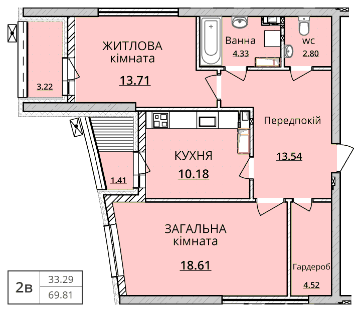 - Штукатурка цегляних стін і перегородок (за виключенням ванн і санвузлів), бетонні поверхні без шпаклювання, підлога – звукоізоляція (4 мм), стяжка (60 мм)